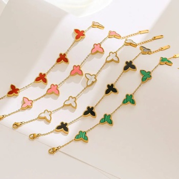 תכשיטי קסם פרפר צבעוני עמיד למים סט זהב 18 קראט עגילי צמיד זהב