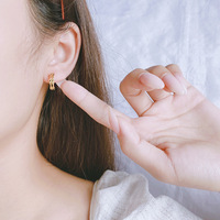 أقراط هندسية من الفضة الإسترلينية S925 بتصميم بسيط هدايا للنساء أقراط هوجي بموجة مزدوجة الطبقة