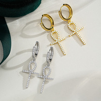 फैशन क्लासिक लक्जरी गहने हाइपोएलर्जेनिक 925 स्टर्लिंग चांदी मोइससानाइट हीरे के क्रॉस ड्रॉप बालियां